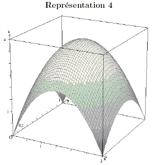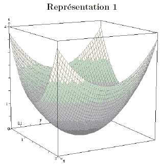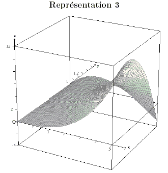 On considère la fonction f des variables réelles x et y définie par: . La surface S est la représentation graphique de la fonction f dans l'espace muni d'un repère .
