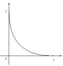 | Soit f la fonction définie sur l'intervalle [0,1] par . Cette fonction est dérivable sur ]0,1] et sa dérivée f' vérifie .La courbe représentative de la fonction f dans un repère orthonormal est donnée ci-contre. |